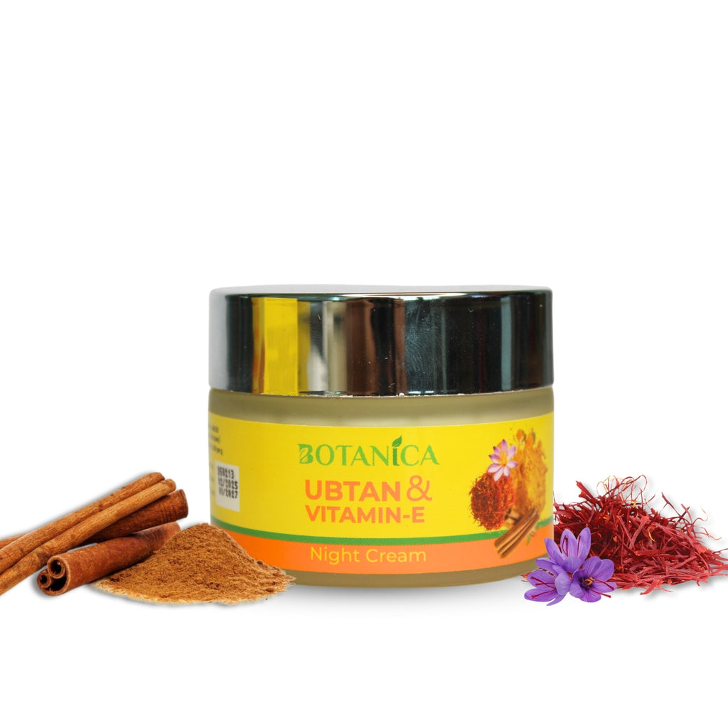 • BOTANICA Ubtan & Vitamin E Night Cream (50ml) – Restores and repairs skin overnight, enriched with Niacinamide & Sandalwood for deep hydration.