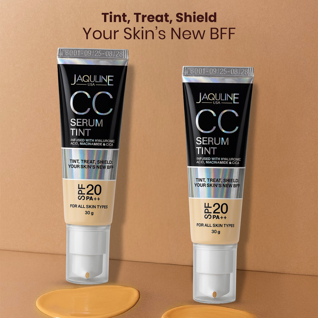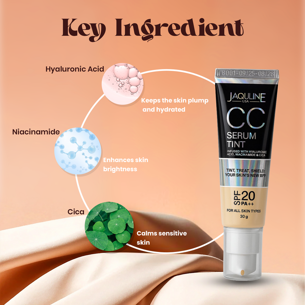 Jaquline USA CC Serum Tint 30g – Hydrating Tinted Serum with SPF, Niacinamide & Hyaluronic Acid, Honey 02