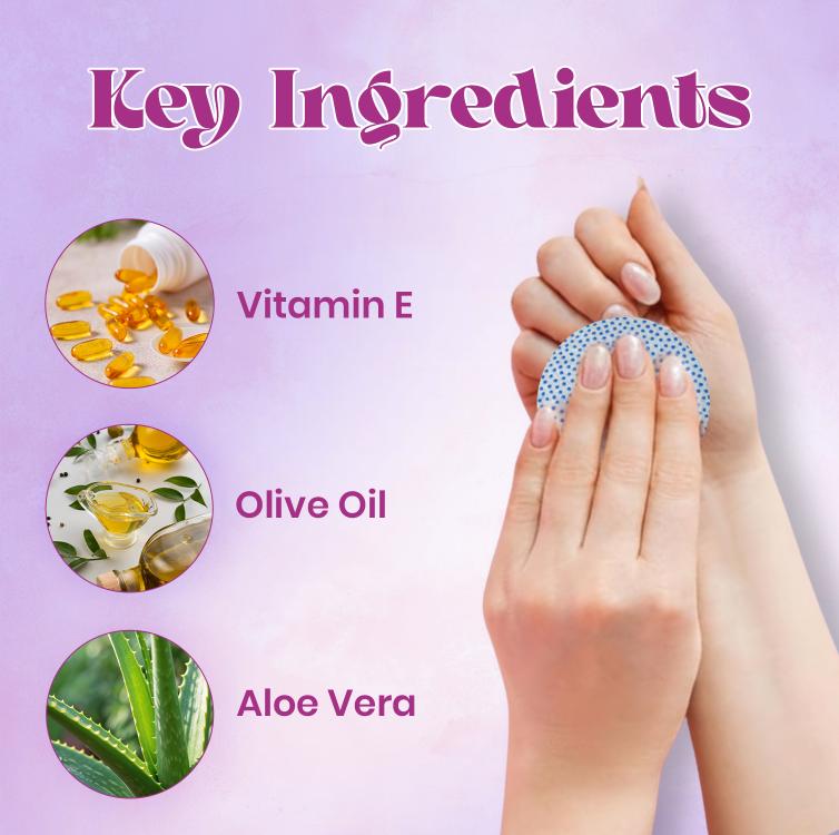 These nail paint remover pads allow convenient, quick and effective nail color change whether you are on the go or at home. They are packed with Vitamin E, Olive Oil and Aloe Vera to strengthen nails as you clean.