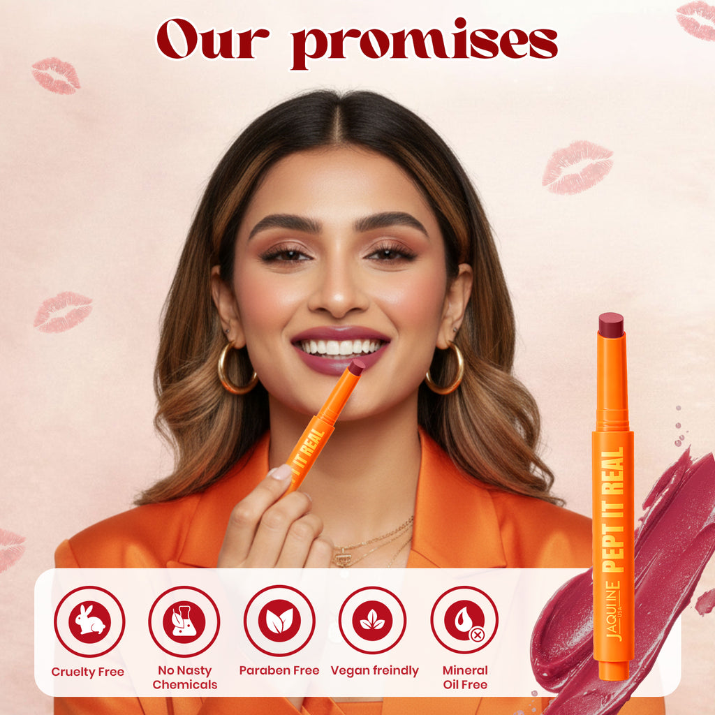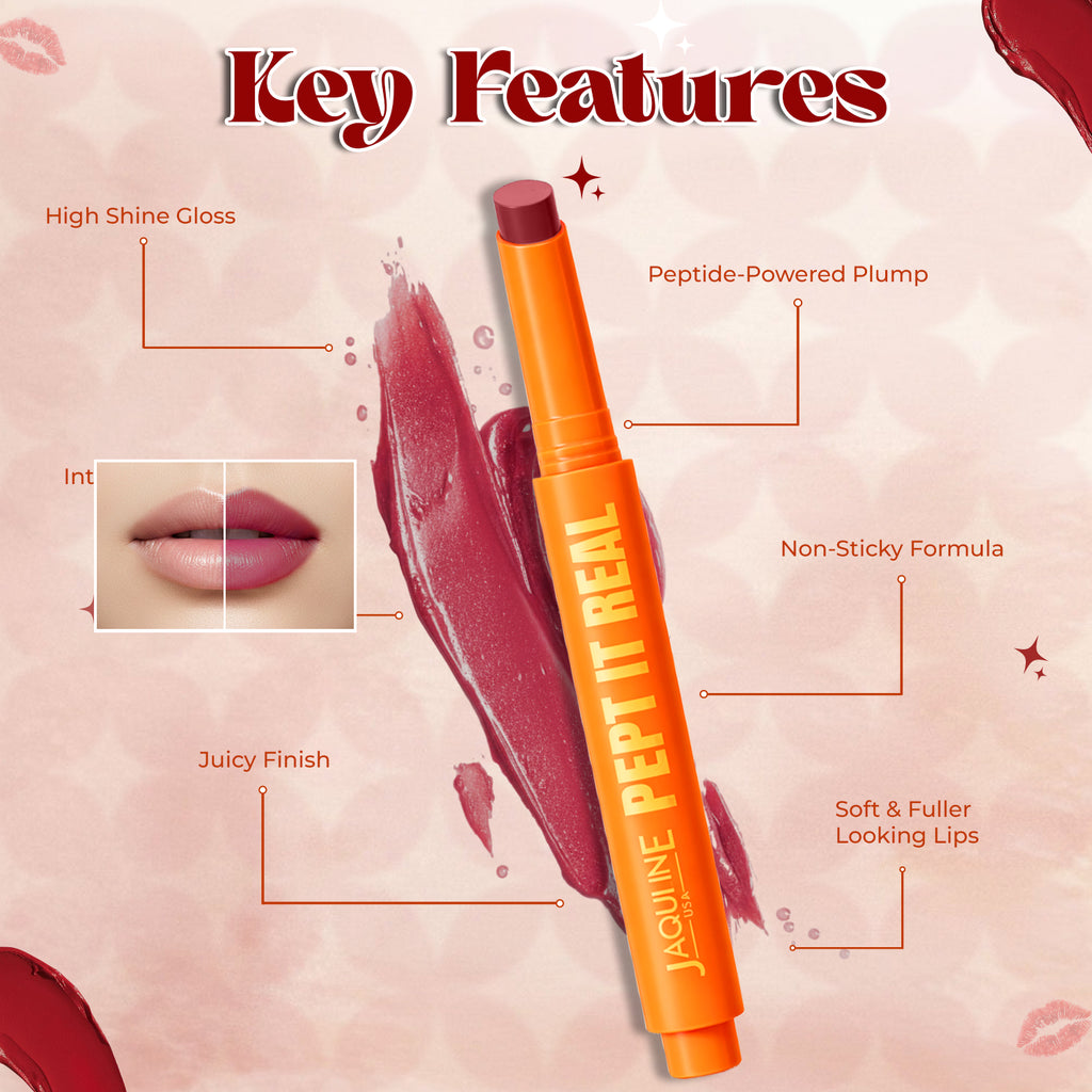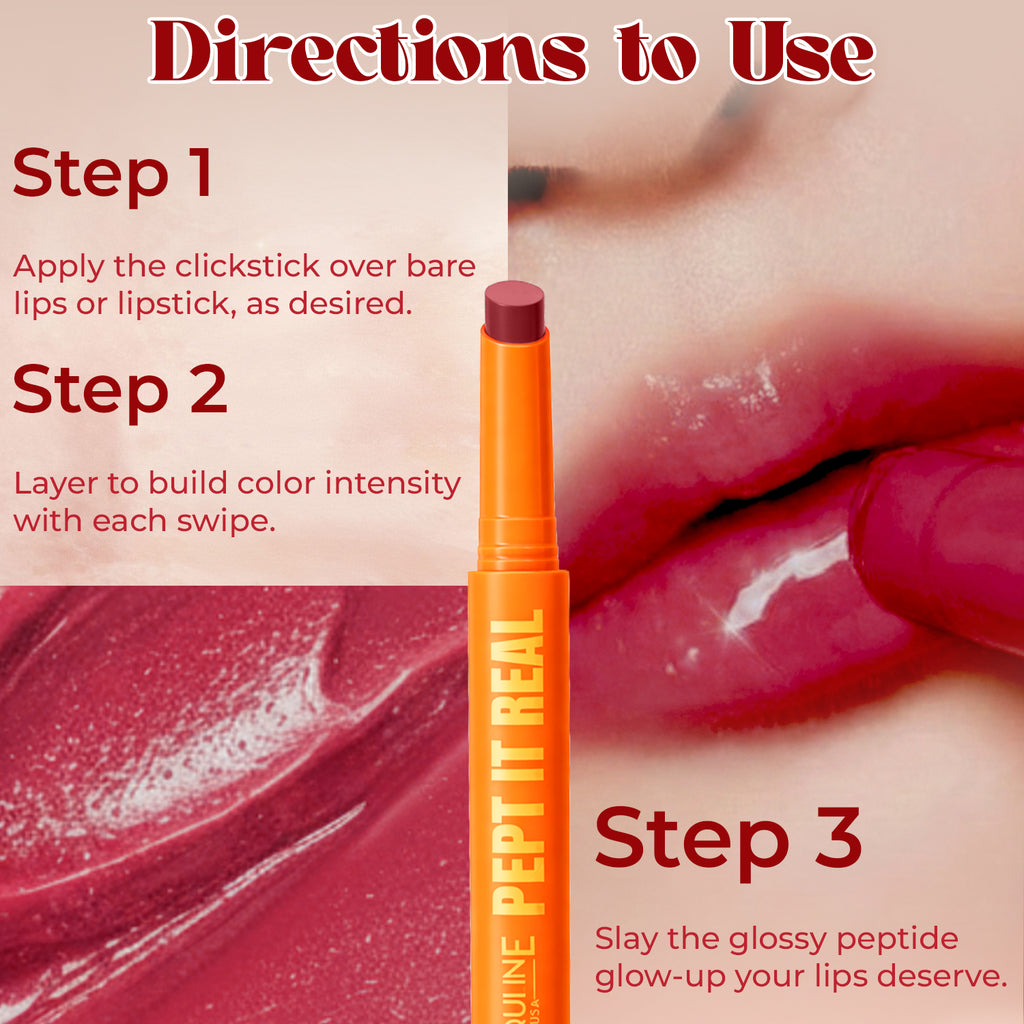 1. Apply the click stick over bare lips or lipstick, as desired.
