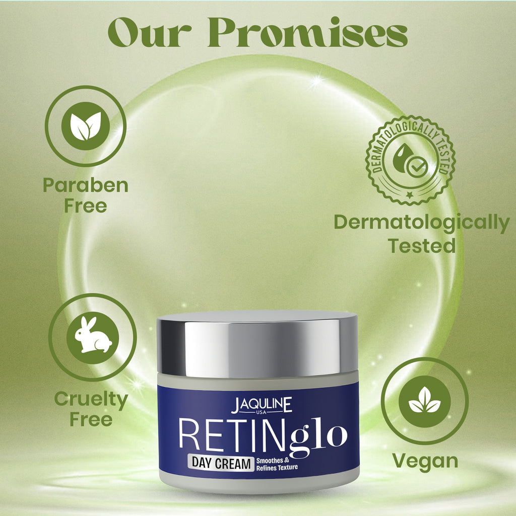 Jaquline USA Retin Glo Day Cream SPF 30 brightens, protected and emote while delivering nourishing hydration. A potent blend of actives and natural ingredients works to even out skin tone, soften texture and guard against UV rays and pollution. Gentle enough for daily use, this cream leaves skin looking fresh, radiant, and balanced - never greasy.