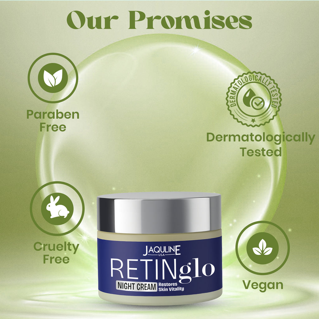 Jaquline USA Retin Glo Night Cream repairs and renews your sin overnight.